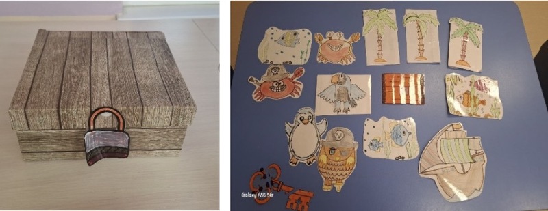 Целеполагание. Воспитатель предлагает найти сундук с сокровищами, но чтобы его найти нам необходимо выполнить задания. (За каждое выполненное задание дети находят в конверте части ключа и координаты другого задания)