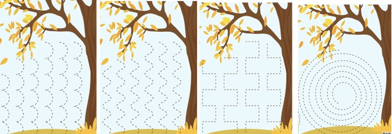 Материал к занятию: конверты с заданиями; листья деревьев; обручи; цветы и их семена; корзина с яблоками, листы с графомоторикой, соленое тесто, рисунки- схемы с