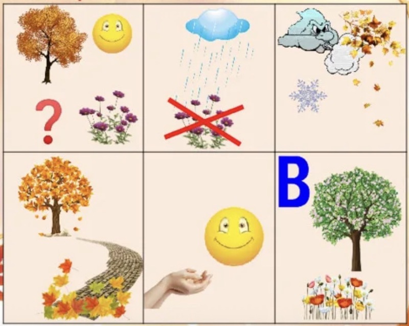 Воспитатель: Правильно. Первый месяц – сентябрь, период ранней осени. Когда дни еще теплые, солнышко греет, как летом, еще цветут цветы, созревают овощи на огороде, фрукты на деревьях, люди собирают урожай. За сентябрем придет октябрь – середина осени, ее еще называют золотой осенью, а вслед за октябрем придет третий месяц – ноябрь. Дни в ноябре становятся хмурыми, серыми, погода может меняться несколько раз в день, бывают даже первые снежинки. В ноябре наступает поздняя осень и после него приходит зима.