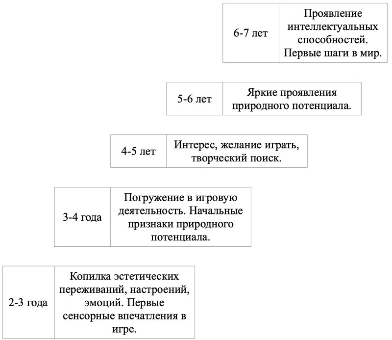Данная концепция разработана на основе технологии В.В. Воскобовича, Б.П. Никитина и помогает мне решить следующие проблемные задачи, направленные на: развитие у детей умений выдвигать гипотезу, проверять ее, опровергать неправильные ответы; поиск способов доказательства правильных решений. Для успешного осуществления развития интеллектуальных и творческих способностей детей разработана модель воспитательно-образовательной деятельности по развитию интеллектуально- творческих способностей в игровой деятельности.