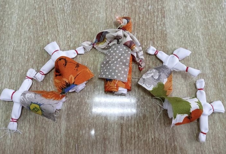 - бумага, карандаши, ножницы, ткань, нитки, фломастеры.