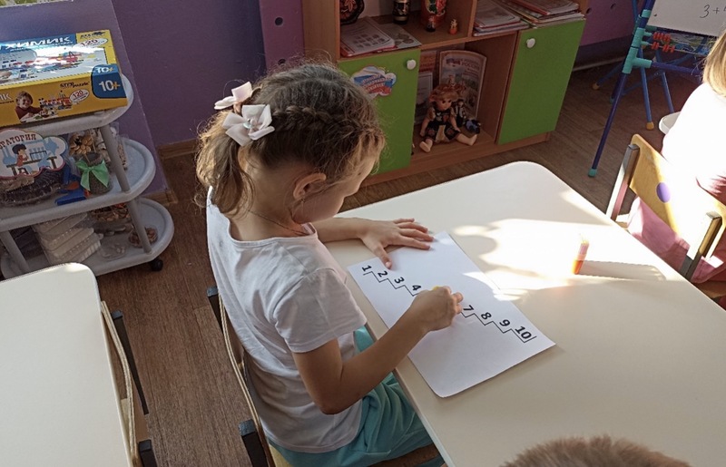 К примеру ребенок на доске видит пример 2+3 встает фишкой на цифру 2 и поднимается по лестнице на 3 ступени вверх, ответ 5. Фишка сама уже стоит на нужной цифре!