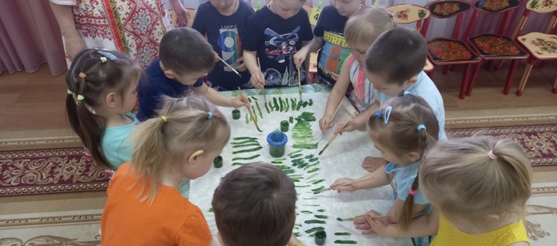 Дети рисуют травку на листах бумаги травку различными средствами изображения.
