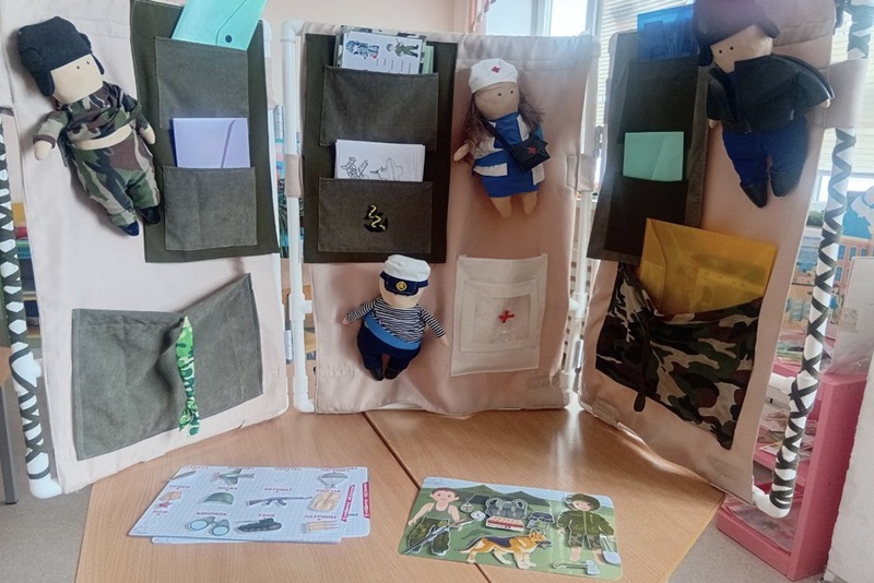 На правой части ширмы расположены дидактическая кукла «Танкист» и карман для игр.