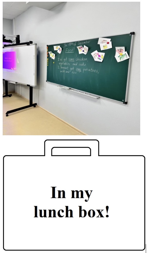 Оформление доски. Ланч-бокс, который учащиеся "наполняли" продуктами