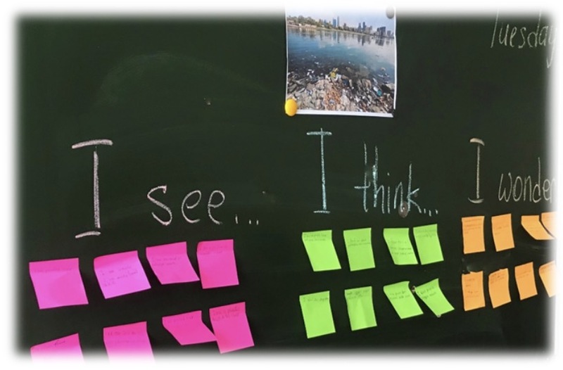 Прием «See Think Wonder» можно использовать на всех этапах обучения. В начальной школе можно начинать с этапа I see и дальше дополнять остальными фразами. Можно раздать таблицу, чтоб учащиеся в паре заполнили её, или вот такие цветные стикеры, чтоб можно было приклеивать на доску. Важно развивать монологическую речь школьника, также этот приём хорош при подготовке к ВПР 7 класс.