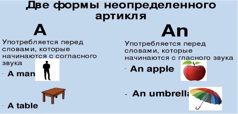 Научить различать артикли перед словами, начинающимися на гласную и согласную букву.