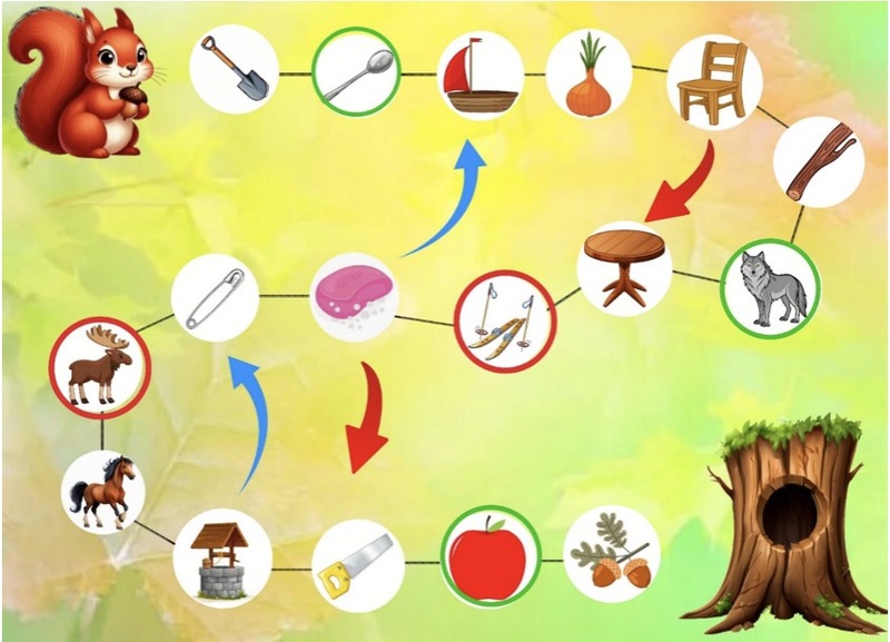 Рис.1 Игра-ходилка «Проведи белку к дуплу»