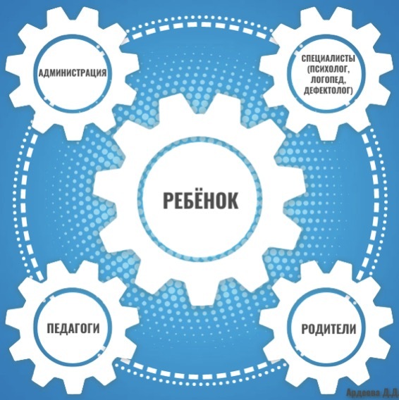 Данная схема наглядно демонстрирует, что в центре системы находится ребенок, а все участники сопровождения работают в тесном взаимодействии для достижения максимальной эффективности коррекционно-развивающей работы.