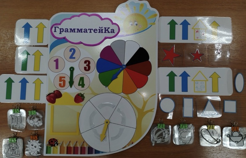 Таким образом, хочу предложить авторское игровое пособие «ГрамматейКа», которое представлено красочным наборным табло, где дети манипулируют с предметами и через зрительные и тактильные ощущения, навыки согласования становятся более понятными.