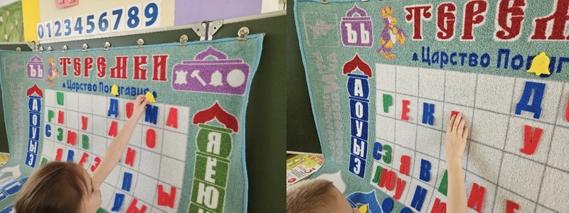 - Дети с нарушением речи испытывают трудности при различении звуков схожих по звучанию. Используя пособие Воскобовича детям предлагаются задания по дифференциации звуков по твердости –мягкости.