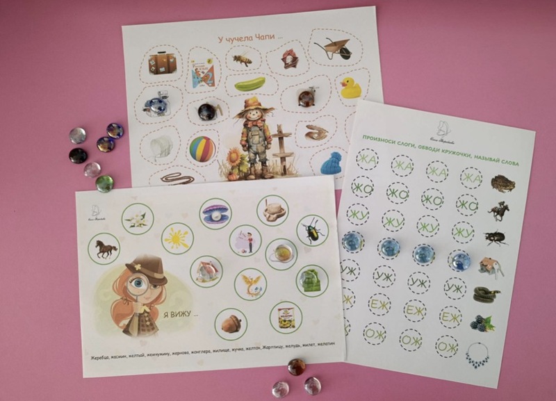 В очередной раз изучая книги и путешествуя по просторам интернета в поисках нестандартных способов проведения занятий, мне попалась идея с использованием камешек Марблс и прописей, для автоматизации звуков. Далее я разработала свои рабочие листы, именно под те звуки и именно с той степенью нагрузки, которая необходима именно этому воспитаннику. Эти идеи, основанные на игровых листах и прописях, не только удерживают внимание, но и делают автоматизацию звуков естественной и радостной частью дня.