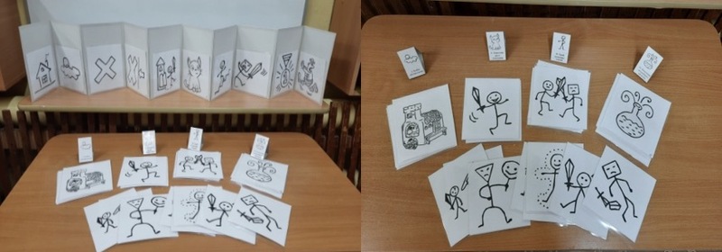 Сделав анализ материалов сети, как наиболее доступный можно найти массу интерпретаций функций. Я взяла для работы функции из монографии Проппа и оставила 10, наиболее используемых. Однако, это не означает ограниченность работы только этими картами. В зависимости от того, как дети усваивают материал, их способностей и возможностей количество карт можно увеличивать. Основываясь на данные функции, изготавливаются карточки с рисунком, соответствующего содержания. Рисунки могут быть цветными красочными черно-белыми шаржами, схематическими. На усмотрение педагога и обучающихся. Я позаимствовала готовые из интернета и получили замечательное по своей сути многофункциональное пособие для развития творческих и речевых способностей дошкольников.
