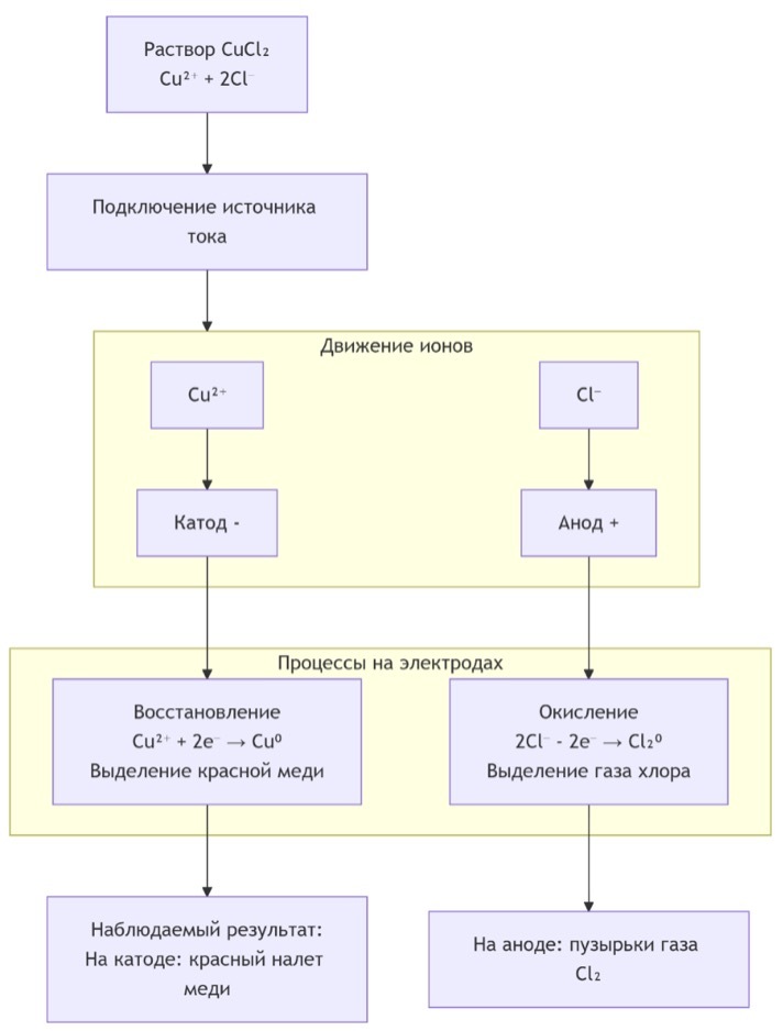 Часть 2. Схема процесса электролиза раствора CuCl₂