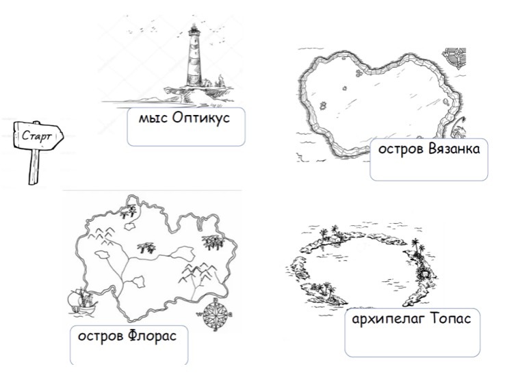 Ведущий. А теперь начнем путешествие, не зря наш остров именуется «Топос», а такое название появилось от науки Топография.