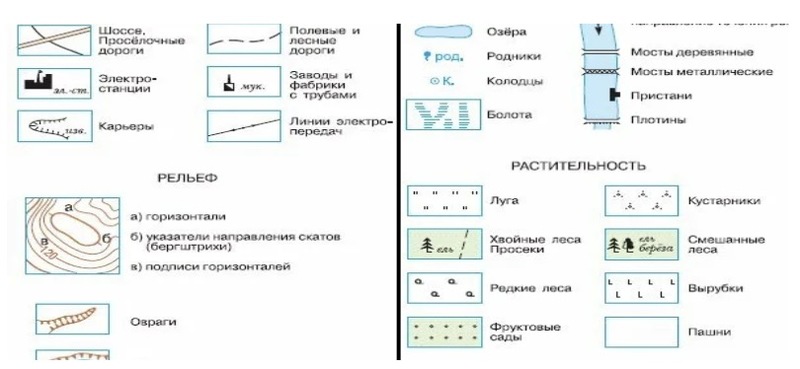 Лист с условными топографическими знаками