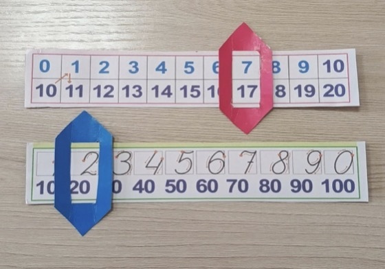 Изготовить данную конструкцию достаточно легко, можно скачать готовый шаблон «лента цифр» или «числовой ряд» на просторах интернета, или же сделать совместно с детьми, но длина должна быть не более 40см., а ширина не более 10см. Затем изготовить стрелочку со «скользящим окном».