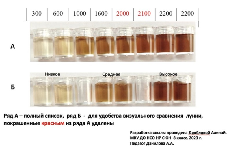 5) Сравнить растворы в крышечках флаконов со шкалой из методички.