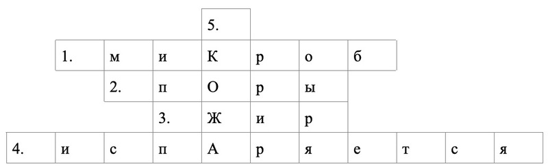 Речевая задача: обогащение словаря специальной терминологией (поры, пот, жир, испаряется).