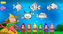 «Раскрась рыбок»: на экране появляются рыбки в виде геометрических фигур. Определить гномика и раскрасить рыбку.