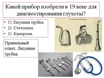 Ведущая: - Какой прибор изобрели в 19 веке для диагностирования глухоты?