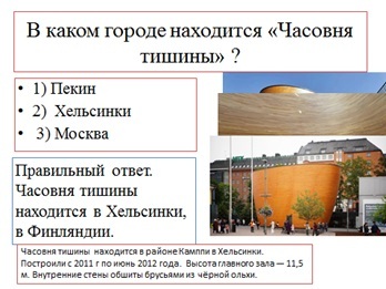 Ведущая: - В каком городе находится «Часовня тишины» ?