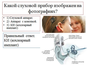 Ведущая: - Какой слуховой прибор изображен на фотографиях?