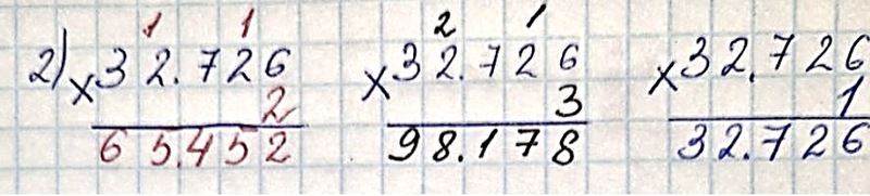 2. Затем выполняем умножение, записывая отдельно каждое промежуточное действие.
