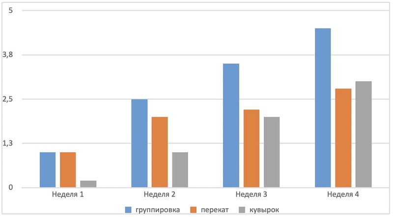 - Неделя 4: Полноценный кувырок на наклонном мате с моей физической помощью (направляющее касание спины). Критерий успеха – не качество, а сам факт выполнения действия.
