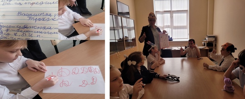 В игровой форме учитель – логопед передает эстафету учителю – дефектологу, так начинается третий блок занятия. Дефектолог использует игры на развитие мелкой моторики, визуализации, концентрации внимания. (Пальчиковые позы, лепка, визуальное закрепление образов букв).