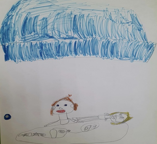 По результатам диагностических исследований у дошкольников отмечается эмоциональное неблагополучие, высокий уровень тревожности и страхов - 70 % детей, также были выявлены такие критерии как беспокойство, напряжения, раздражительности, рассеянности. У многих детей - 60% отмечается страх громких звуков за окном. На рис.1. девочка изобразила, как они с мамой прятались в помещении без окон в момент полета БПЛА. У 20 % детей отмечается нарушение сна и страх смерти. 10% дошколят испытываю страх разлуки при расставании с родителями.