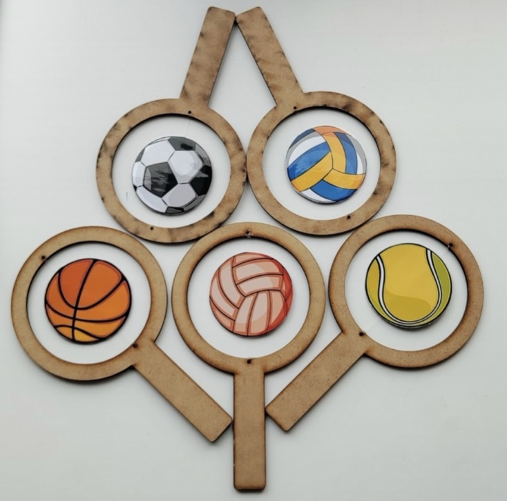 Поддувалочка представляет собой вырезанный корпус из ДСП, в центре круга расположен вращающийся заламинированный мяч, прикреплённый леской с двух сторон.