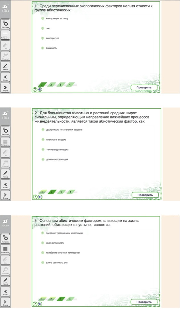 Предполагаемый ответ: - Цель нашей работы: узнать какие экологические факторы называются абиотическими, биотическими, антропогенными и научиться различать их на конкретных примерах. Цель работы достигнута, но надо закрепить знания об экологических факторах и потренироваться их применять при выполнении заданий. |