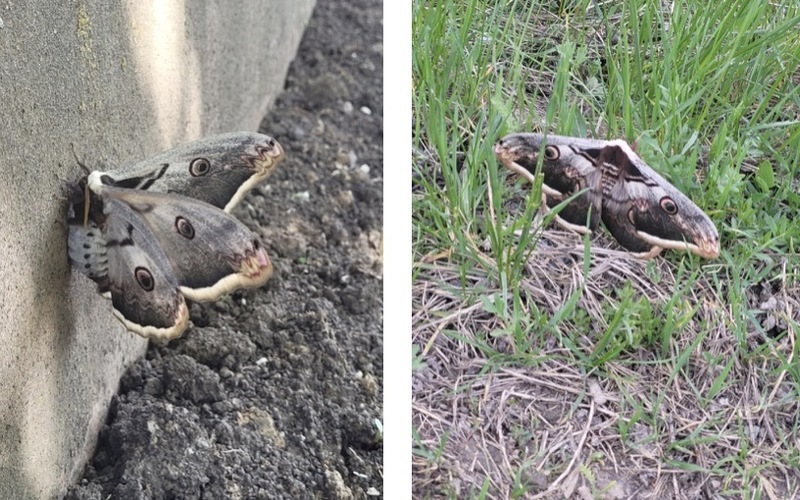 Однажды, в июле месяце, недалеко от своего дома, я встретила красивое насекомое. Это была огромная бабочка - Павлиноглазка грушевая (сатурния грушевая, большой ночной павлиний глаз) (лат. Saturnia pyri) – это насекомое отряда чешуекрылые, семейства павлиноглазки, рода сатурнии. Это ночные бабочки, но мне посчастливилось увидеть ее днем, и я не стала упускать возможность и решила попрактиковаться в фотосъемке на телефон (Samsung Galaxy S20 FE. 12 –МП широкоугольная Dual-Pixel, OIS, f/1,8, 1/1,76 дюйм, 1,8 мкм + 12-МП, ультраширокоугольная, f/2,2, 1/3,06 дюйм, 1,12 мкм + 8-МП телефото, 3-кратный оптический зум, 30-кратный цифровой зум, OIS, f/2,4, ¼,4 дюйма, 1,0 мкм).