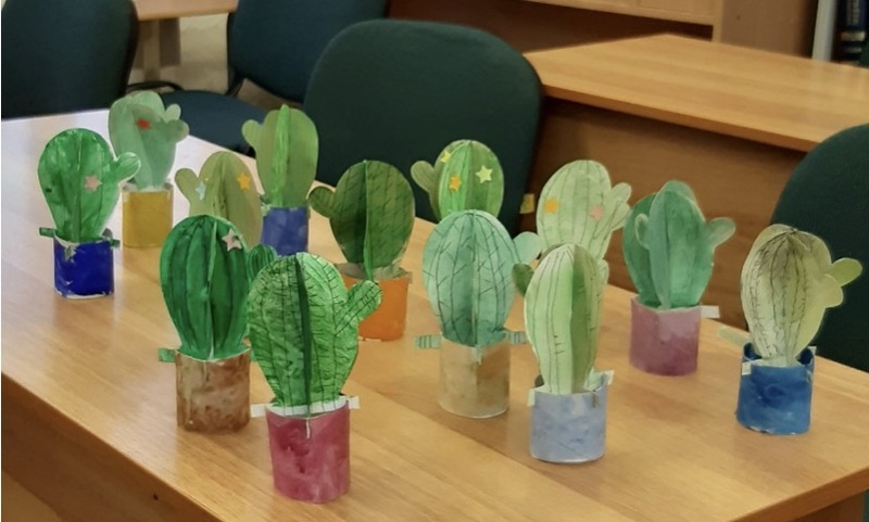 - вновь экологическая составляющая нашей работы «вступала в дело»: мы изготавливали кактусы из вторичного сырья – бумажных втулок.
