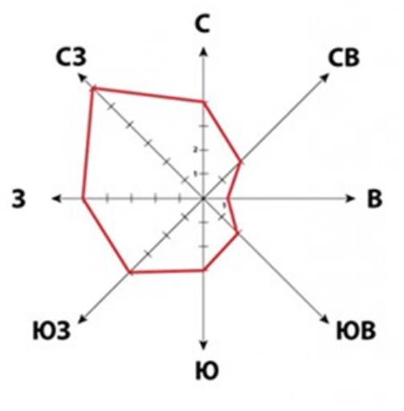 Задание: Рассмотрите розу ветров и ответьте на вопрос. Где лучше всего построить животноводческую ферму и почему?