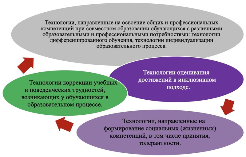 Среди педагогических технологий можно выделить те, которые могут быть успешно использованы в инклюзивной практике преподавателя на занятиях. Классифицировать их можно в соответствии с задачами и ролью в организации совместного образования обучающихся с различными образовательными потребностями.
