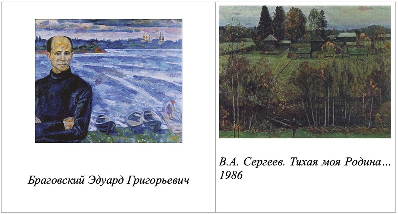 Участники рассматривают картины разных авторов, созданные по мотивам стихов Рубцова. Они определяют, какие стихи легли в основу каждой картины, и пытаются описать атмосферу и настроение полотна.