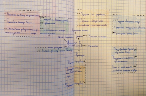 Для составления интеллект-карты мы используем белый лист А4 или разворот обычной школьной тетради. В центре располагаем главную идею (мысль). От нее в разные стороны расходятся ветви ключевых идей (мыслей), от которых также можно "пустить" дополнительные ветви для большей наглядности.