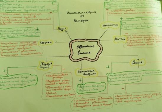 1. Положительные и отрицательные аспекты европейского влияния на страны Востока (работа велась по нескольким параграфам). Карта создана на листе А4 (рис. 1).