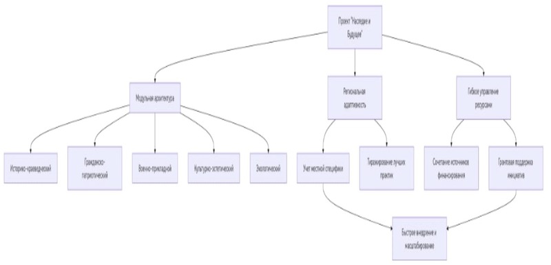 · Возможность "гибкого старта": Регион может начать не со всей программы, а с 1-2 самых актуальных для него направлений (например, с историко-краеведческого и экологического), постепенно подключая остальные.