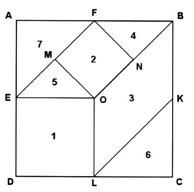 -Первые испытания позади, с ними вы неплохо справились, теперь вас ждет минутка релаксации - Пифагорова головоломка. Из семи частей нужно составить квадрат. Все части озвучить на английском.