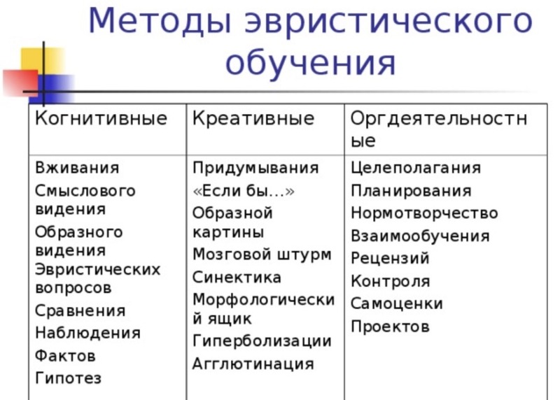 Рисунок 2 — Схемы эвристических методов обучения и их классификация