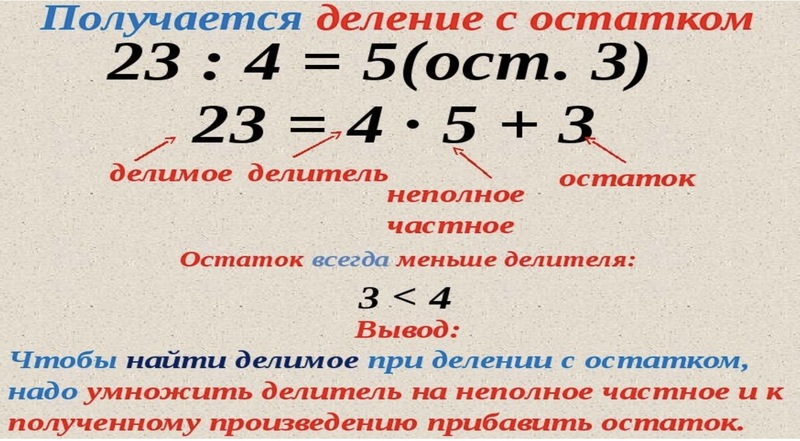 - Как выполняется деление с остатком и остаток не может больше чего?