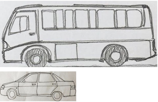 Задача. На рисунке изображены автобус и автомобиль. Длина автомобиля 4265 мм. Какова примерная длина автобуса? Ответ дайте в метрах.