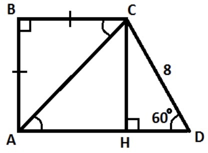 Старательный, но не слишком внимательный, ученик заметит параллельность ВС и AD, равенство углов ВАС и ВСА, вычислит величину угла HCD.
