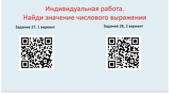 - На экране проецируется QR-код, учитель на заранее подобранный интерактивный карточный тренажер на Учи.ру по теме "Числовые выражения".